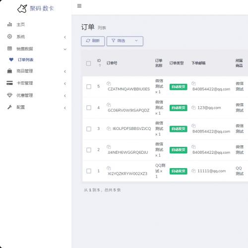 这是一套界面清爽简洁且后台功能强大的自动发卡源码,可 24 小时下单全自动发卡,带有会员功能。支持重复卡密和多种普通卡密类型,支持游客和注册会员购买卡密,已集成支付宝官方支付和多个第三方支付接口。
